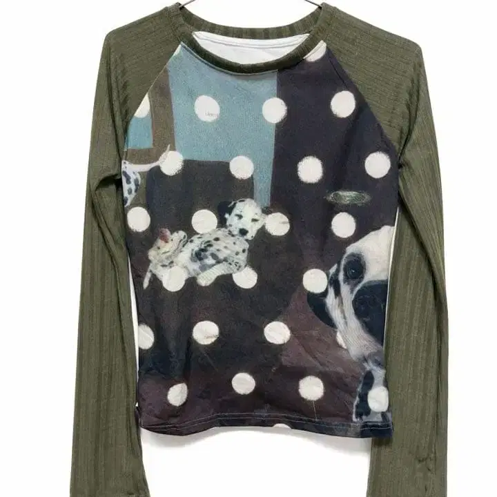 [레어 디자인] Y2K 도트 x 도그 프린트 절개 롱 T / S 상당