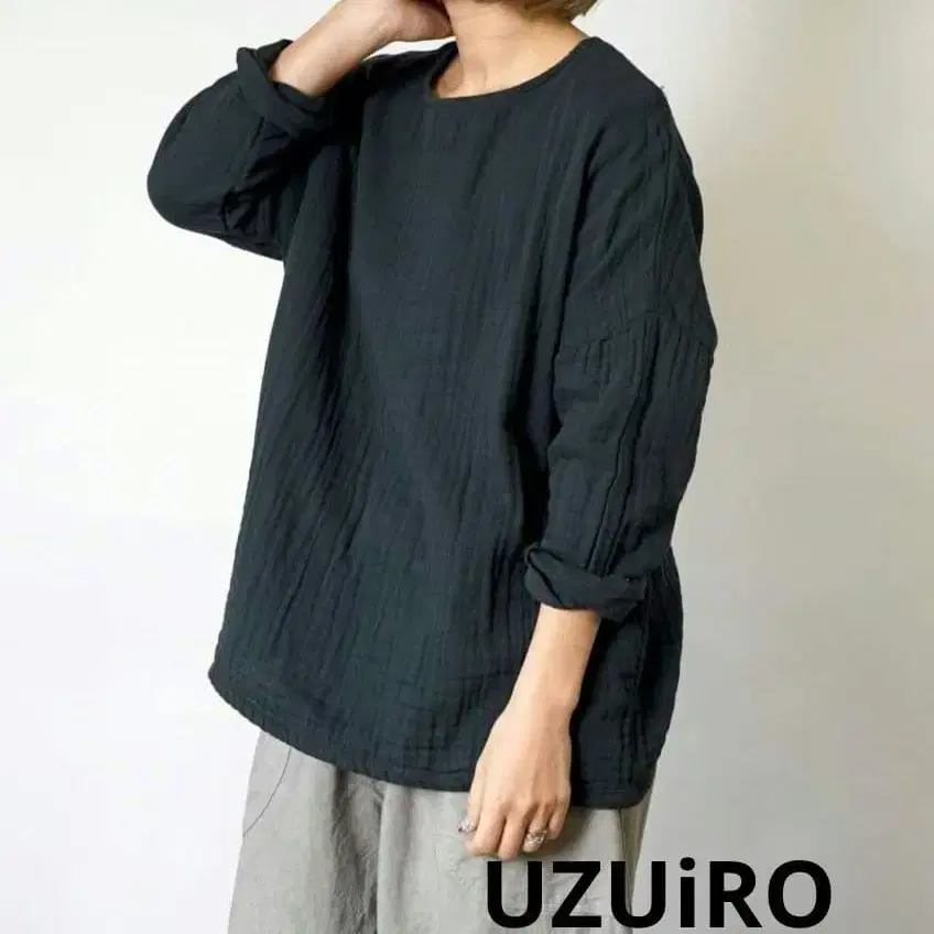 UZUiRO 넉넉한 거즈 롱T/블랙/치타 목화 3중 거즈