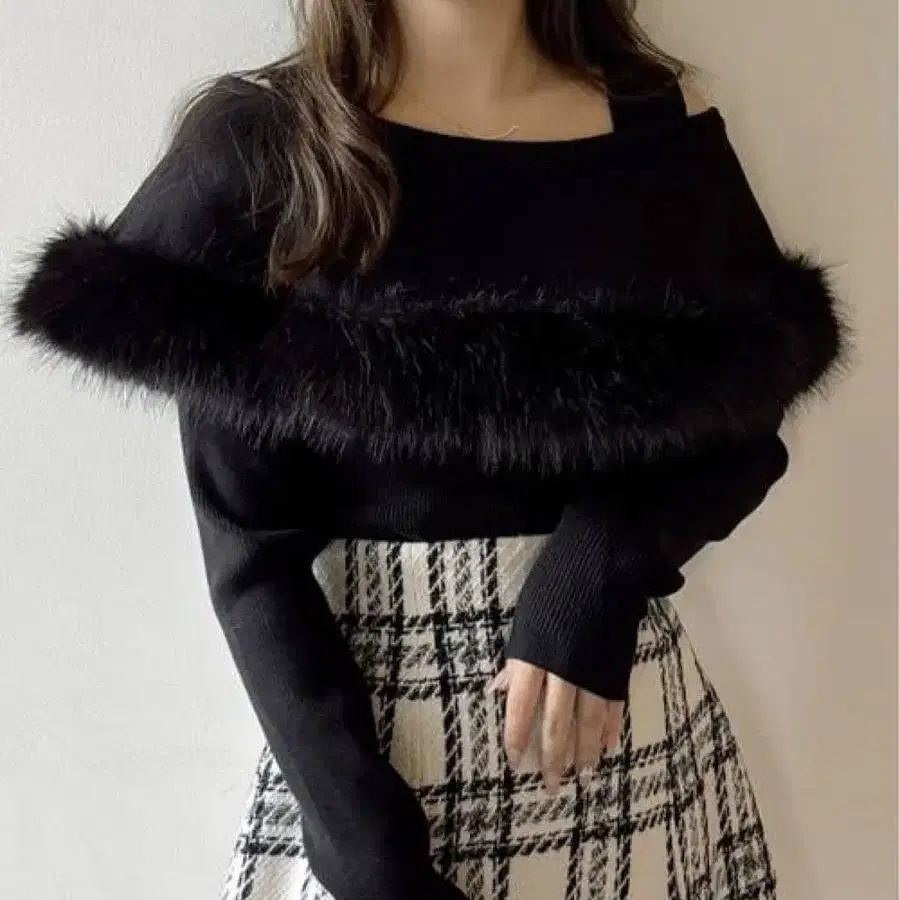 NOMAE 퍼 오프숄더 케이프 칼라 니트