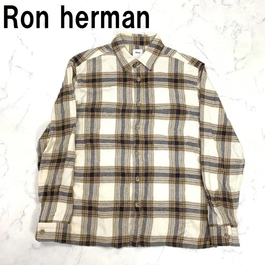 A7448 론 헤르만 긴팔 셔츠 면 체크 베이지 브라운 M