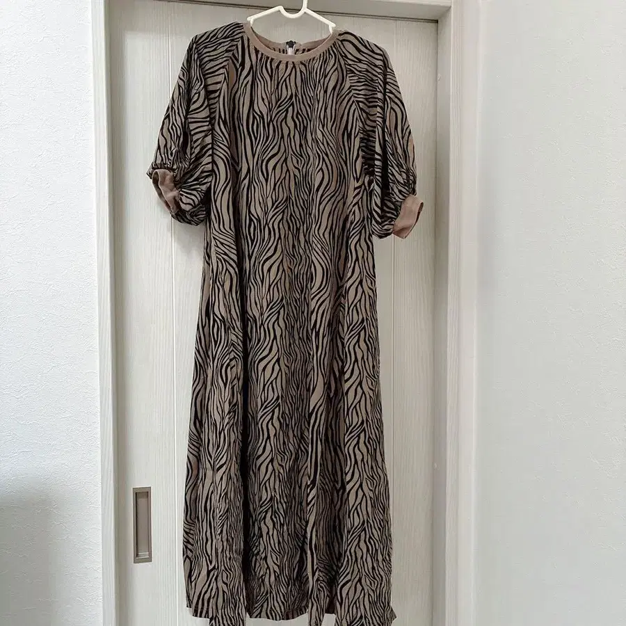 자동 번역되었어요. 원문보기THOUSAND MILE x FREAK'S STORE / 사우전드마일 퍼프 슬리브 플레어 원피스 제브라 패턴