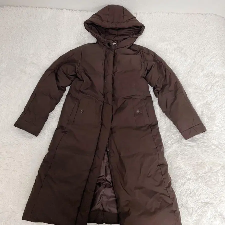 [ 23구 ] 다운 롱 코트 브라운 38 후드 부착 다운 80% 경량