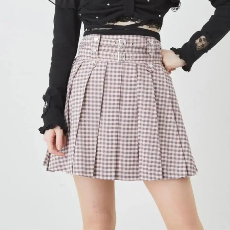 Ank Rouge 체크 플리츠 치마바지 핑크