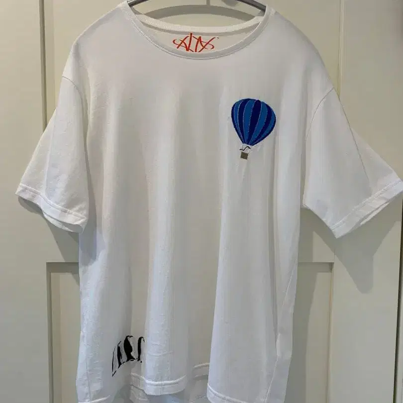 열기구와 펭귄이 자수로 새겨진 T셔츠입니다.