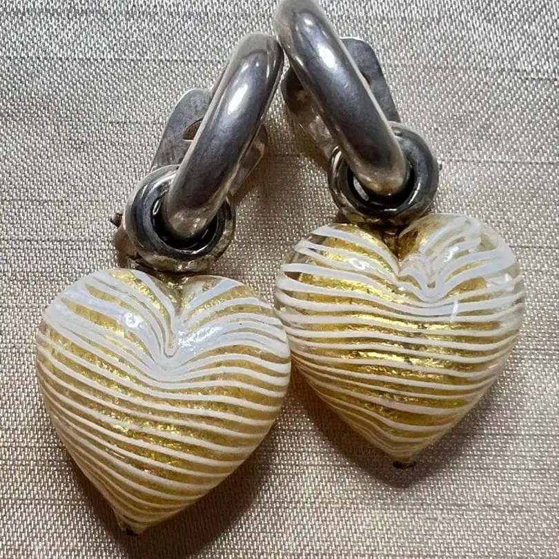 ITALY 제 베네치아 유리 하트 디자인 2way 귀찌