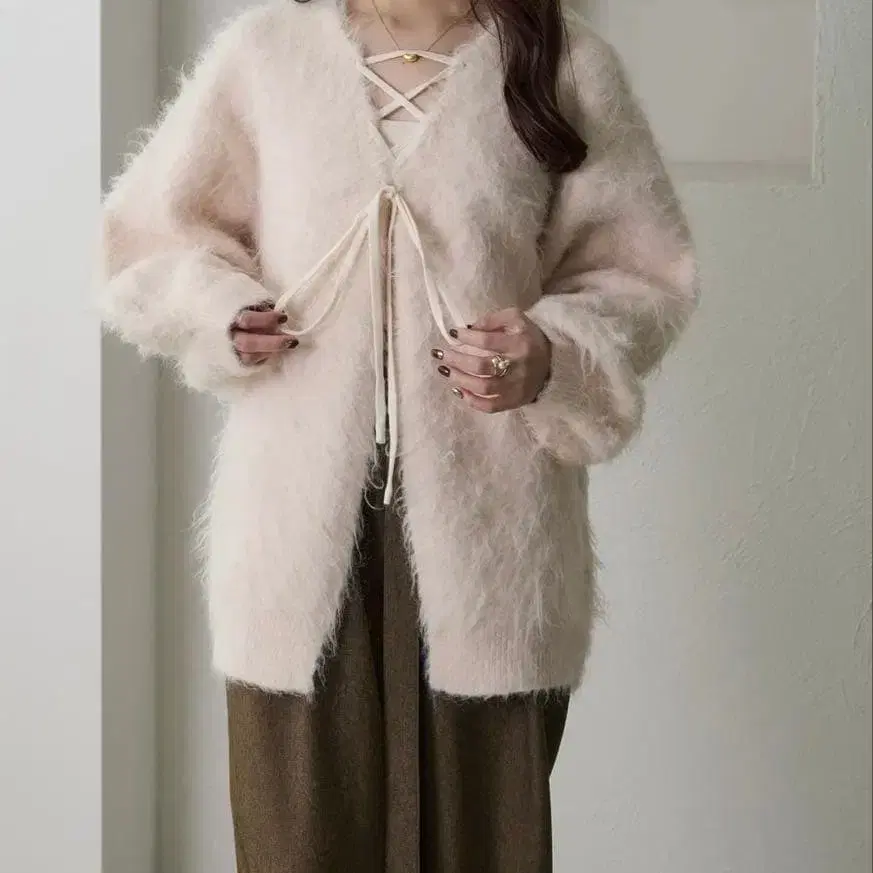 [apres jour clair] 샤기 레이스업 니트 가디건