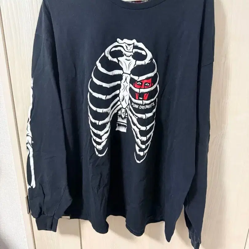 PUNK DRUNKERS 골격 디자인 롱 슬리브 T셔츠