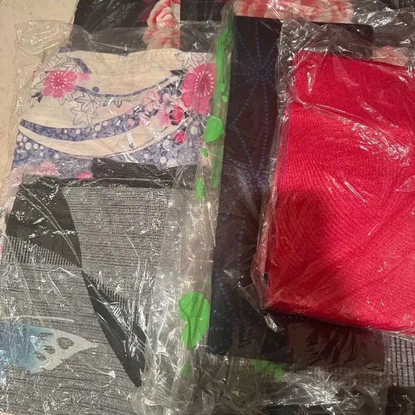 유카타 오비 세트 빨간색 블랙 꽃무늬