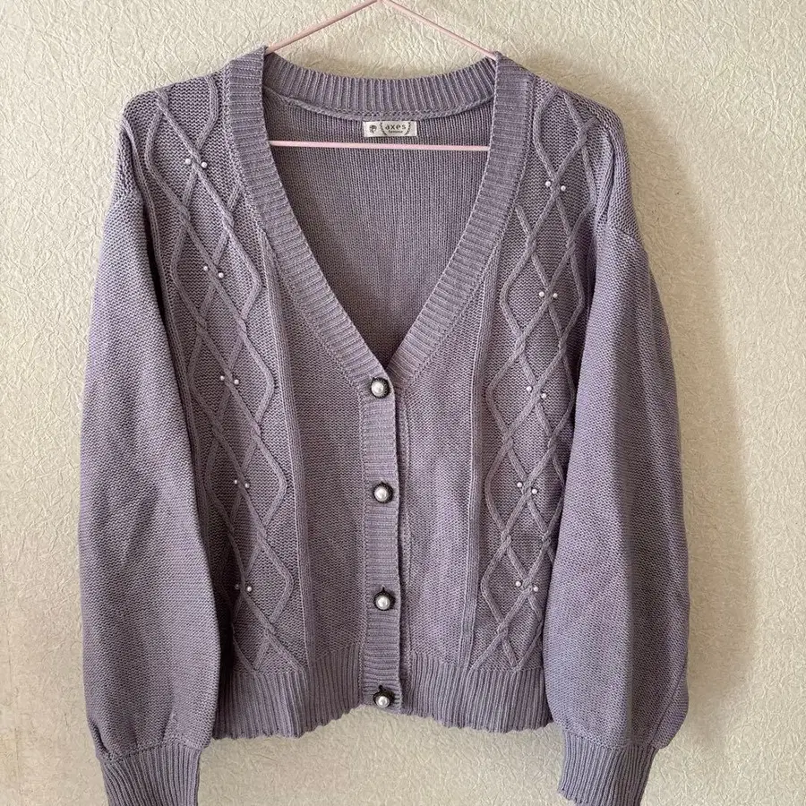 엑시즈팜 연보라 다이아몬드 편직 니트 가디건