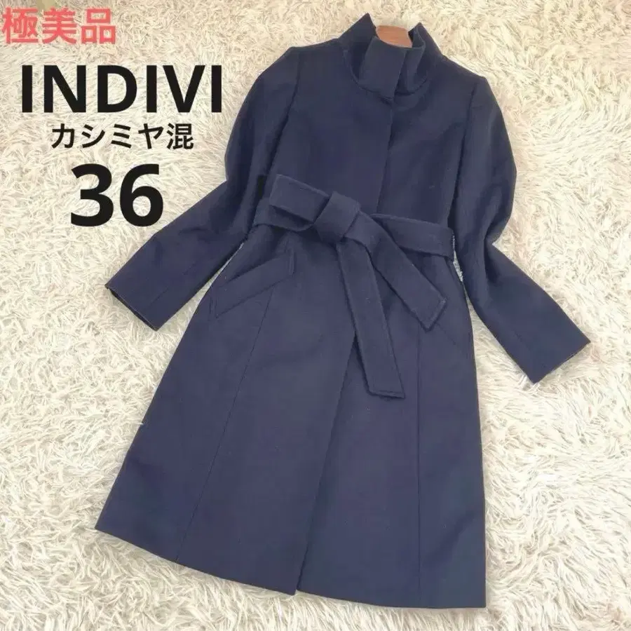 INDIVI 캐시미어 혼방 벨티드 코트 네이비 36