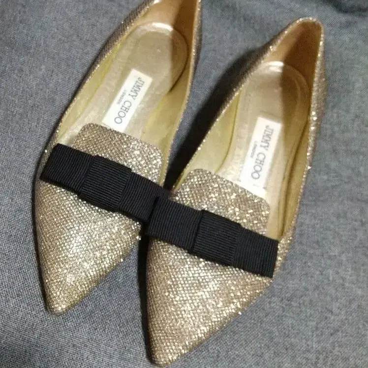 지미추 골드 글리터 플랫슈즈 36.5 리본