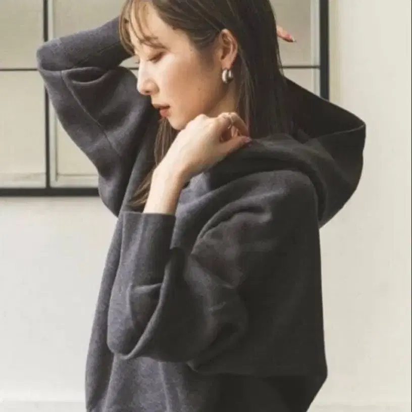 noble 접결 턱 편직 후드 풀오버 그레이
