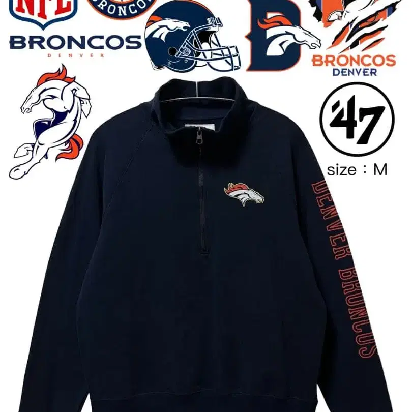 NFL 덴버 브롱코스 하프 지퍼 맨투맨 M 블랙 USA 구제 의류