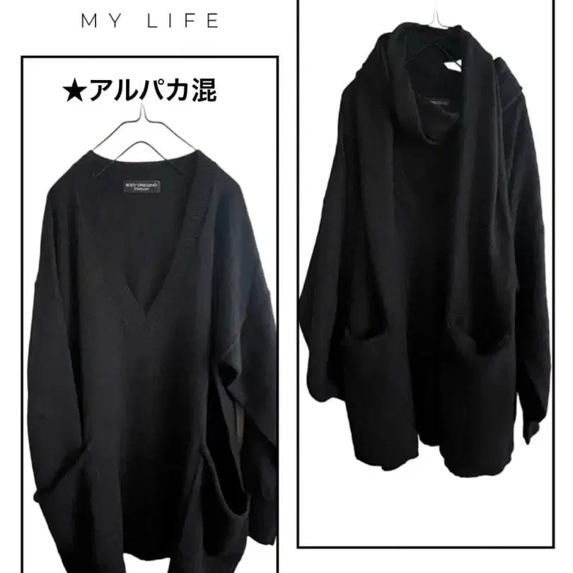 ★ 색상 다른 그레이도 있습니다. BODyDRESSING Deluxe 표기 38 어깨 너비 59, 겨드랑이 아래 가슴 너비 59, 기장 68, 소매 길이 43.5 ★ 머플러 230 x 26 이전에 25,000엔 전후로 구매했습니다. 뭉실한 소매 오버 니트 착용하면 귀엽습니다 ♪ 넥 주변 스티치, 포켓 입구의 롤 등 니트 본체에는 물론 포켓이 있지만 머플러에도 포켓이 있어 편리하고 귀엽습니다. 알파카, 양모가 함유되어 있어 가볍고 뭉실하며 따뜻합니다. 착용 횟수가 적어 눈에 띄는 보풀 없이 깨끗하다고 생각하지만 니트 소재이므로, 부분적으로 약간의 사용감을 느끼는 분이 계실지도 모릅니다. 개인적으로는 새 상품에 가깝게 깨끗하다고 생각합니다! 상품 상태, 색감 등에 대한 느낌은 어디까지나 개인적인 주관이며 중고품이므로 상품에 대한 느낌의 차이, 놓친 부분 등이 있을 경우 유감스러운 마음을 드리지 않도록 세세한 부분 등이 신경 쓰이는 분은 삼가해 주십시오. ⚫︎ 깨끗한 상태이지만, 어디까지나 중고품이라는 것을 이해하신 후에 구매를 부탁드립니다. 반드시 프로필을 읽어주세요. 색상 - 블랙 계열 소재 - 울, 아크릴/레이온(화학 섬유) 넥 - V넥
