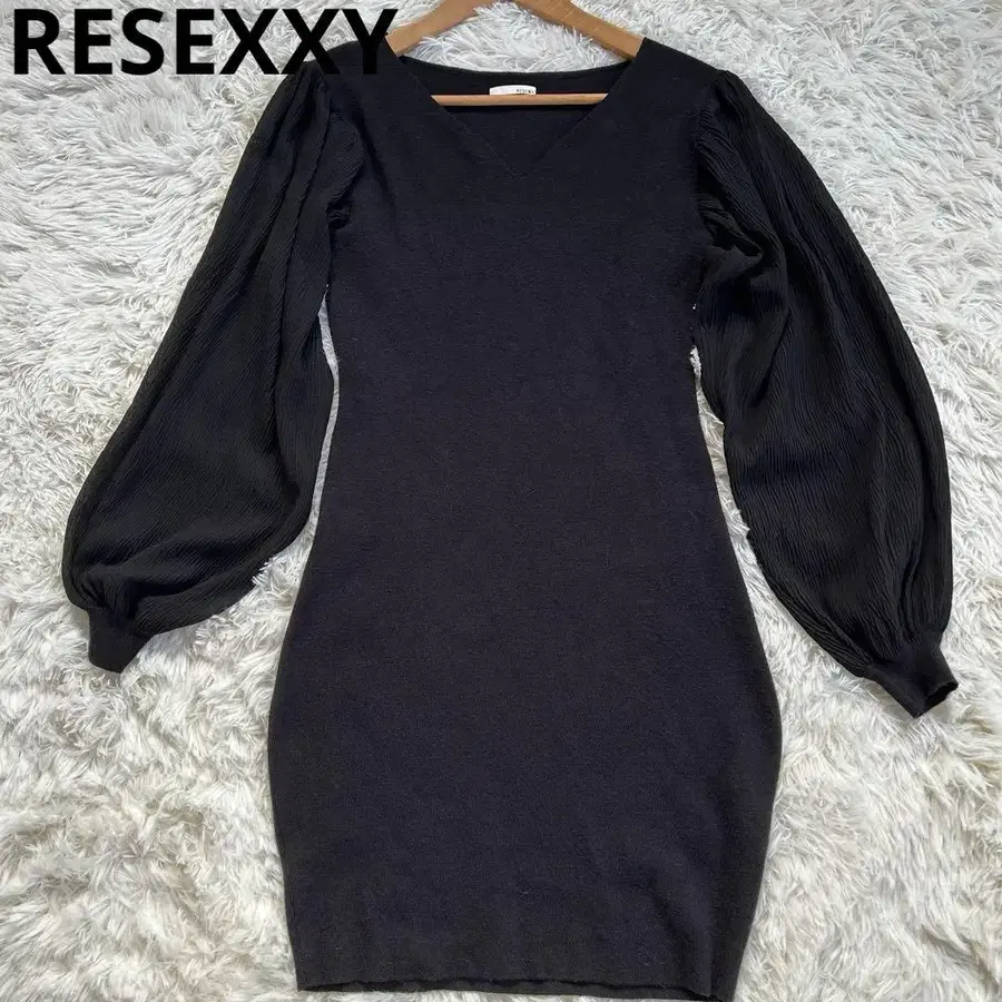 RESEXXY V넥 니트 원피스 쉬폰 소매 퍼프 슬리브 블랙
