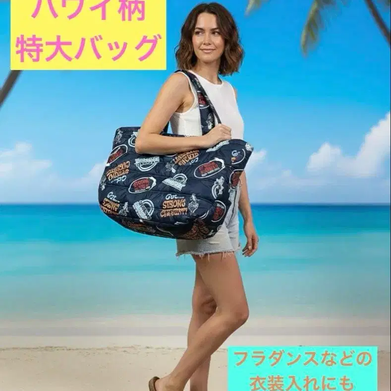 특대형 하와이 패턴 퀼팅 토트백 스트롱 커렌트 마더백