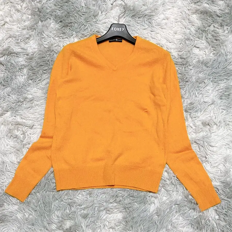 다카시마야 S V넥 니트 스웨터 캐시미어 100% 오렌지 출퇴근