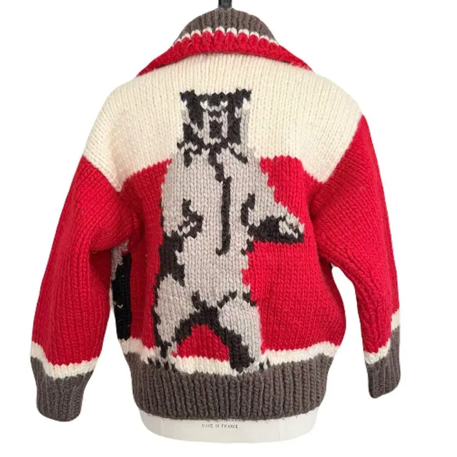 그리즐리 곰 패턴 카우친 스웨터 니트 자켓 울 빈티지