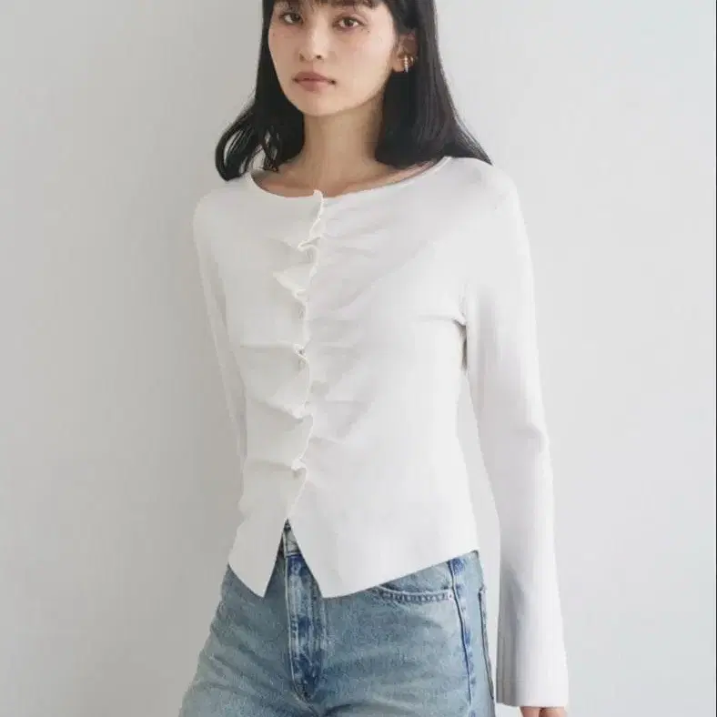 CONNSE 프론트 턱 개더 니트탑