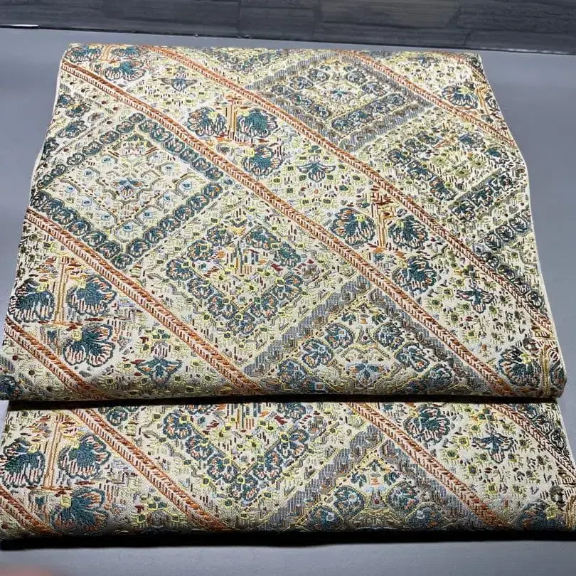 미사용 카와시마 직물 롯츠 후쿠로 오비 순수 실크