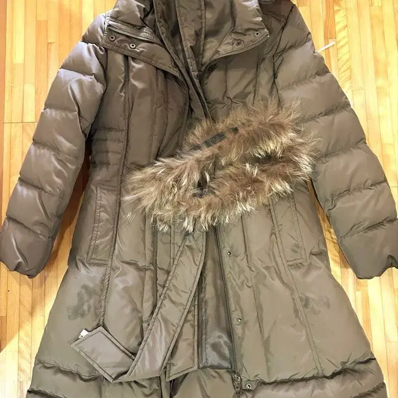 카키 다운 롱 코트 후드 부착
