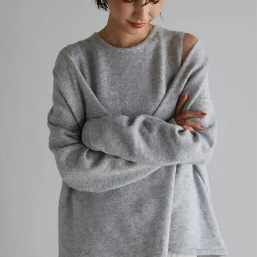evernavy 슬리브리스 긴팔 니트 세트 앙상블 그레이