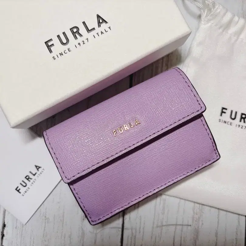 자동 번역되었어요. 원문보기라벤더 컬러의 가죽 3단 폴더형 지갑, FURLA의 스타일리시한 디자인.