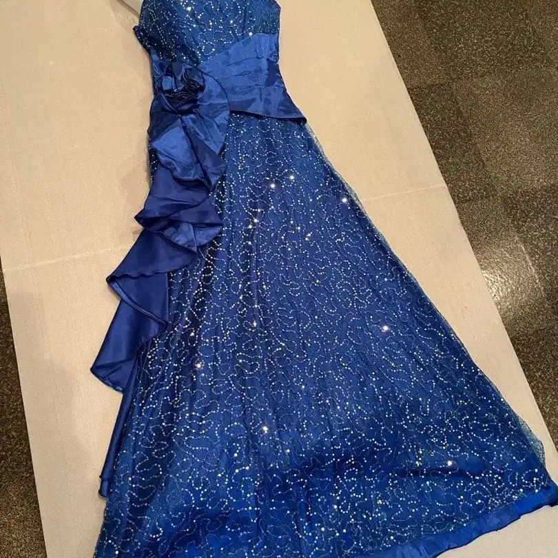 새상품급 연주회/파티/무대/촬영/컬러 블루+총 스팬 롱 드레스