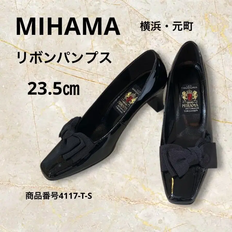 MIHAMA 리본 펌프스 23.5cm 에나멜 블랙 일본제 새상품급