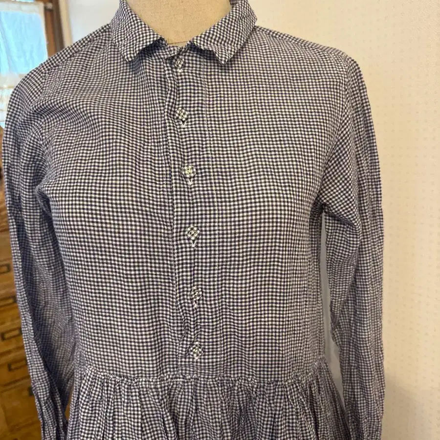 올드맨즈테일러 체크 무늬 긴팔 무릎 기장 원피스