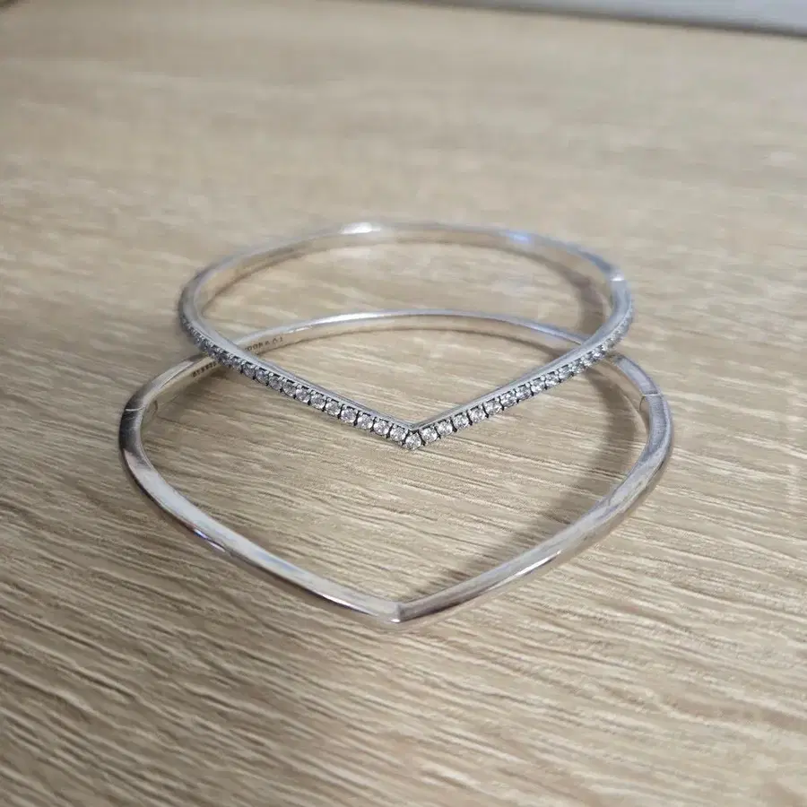 실버 V자형 뱅글 스톤 포함