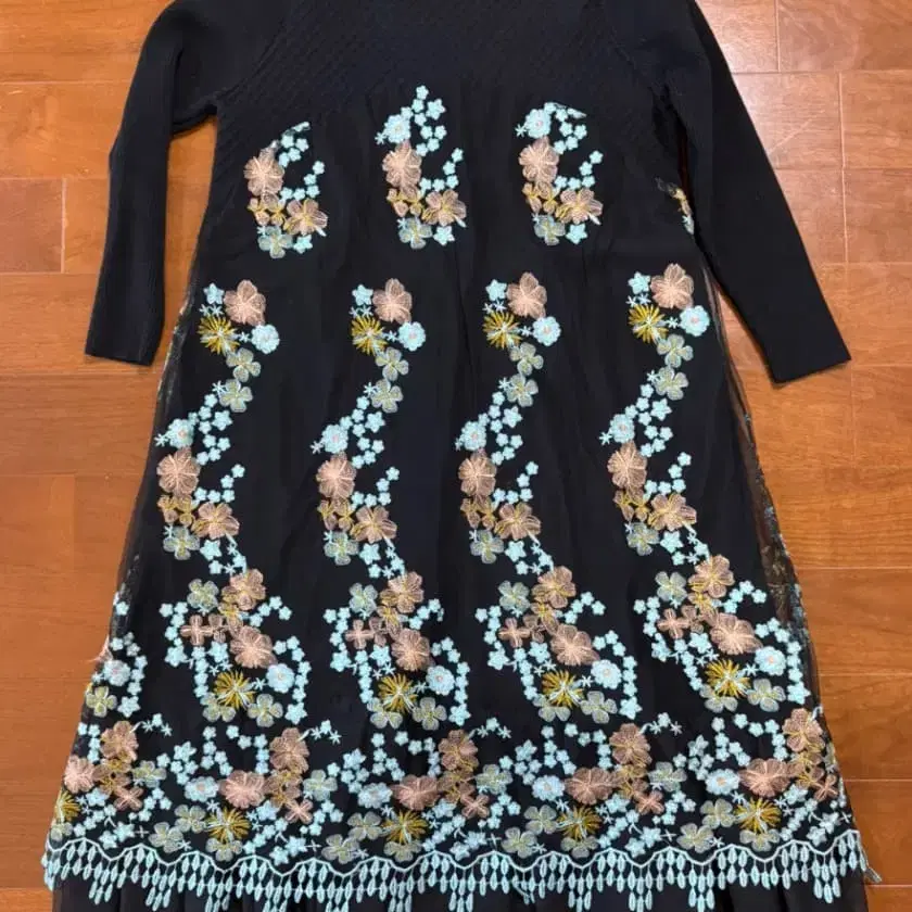 원가 15600엔 cawaii 핑크와 블루의 아름다운 꽃 자수 롱 원피스