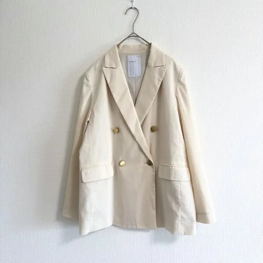 NOBLE의 23SS 린넨 스트레치 피크 라펠 더블 자켓입니다.