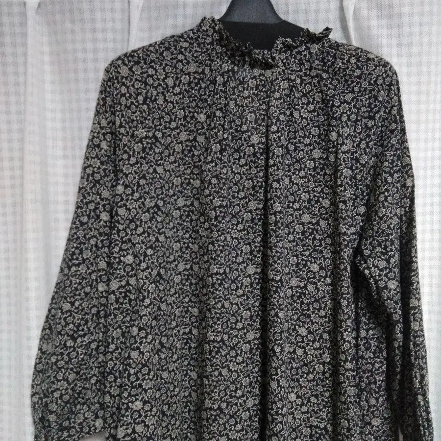 이치 나추란의 블랙과 화이트 꽃무늬 긴팔 롱 원피스 오늘 6500엔입니다