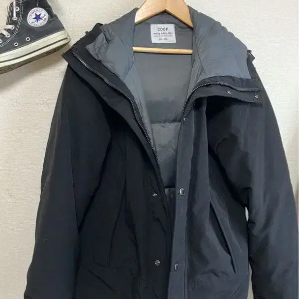 coen (코엔) 블랙 후드 부착 다운 자켓 S