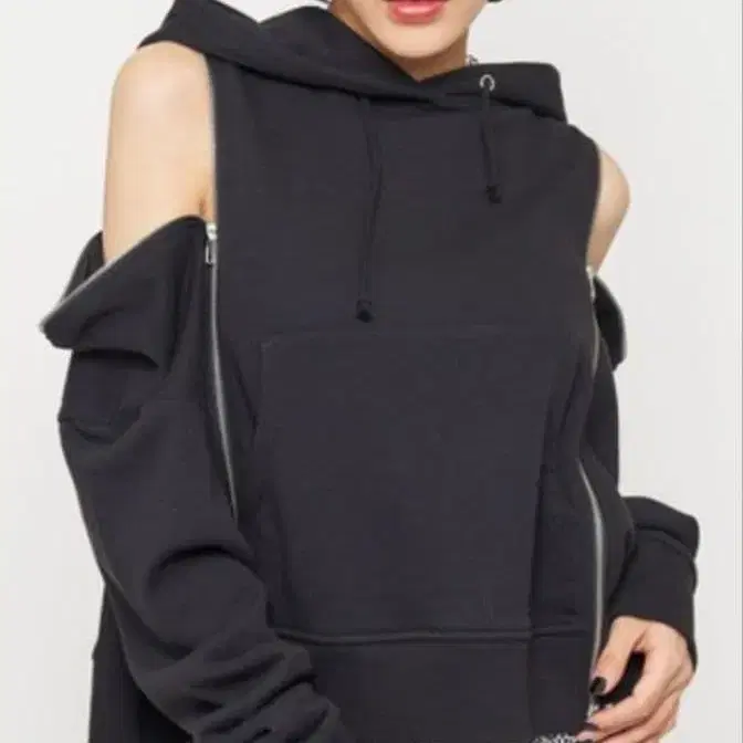 SPIRALGIRL ZIP 오픈 숄더 2Way 맨투맨 상의 블랙