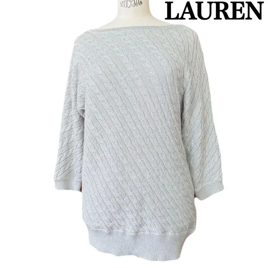 LAUREN 랄프 로렌 실버 라메 케이블 니트 7부 소매 스웨터 S