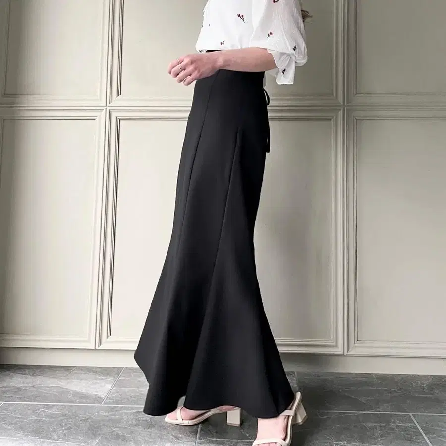 블랙 플레어 스커트 백 레이스업 슬림 레그 심플