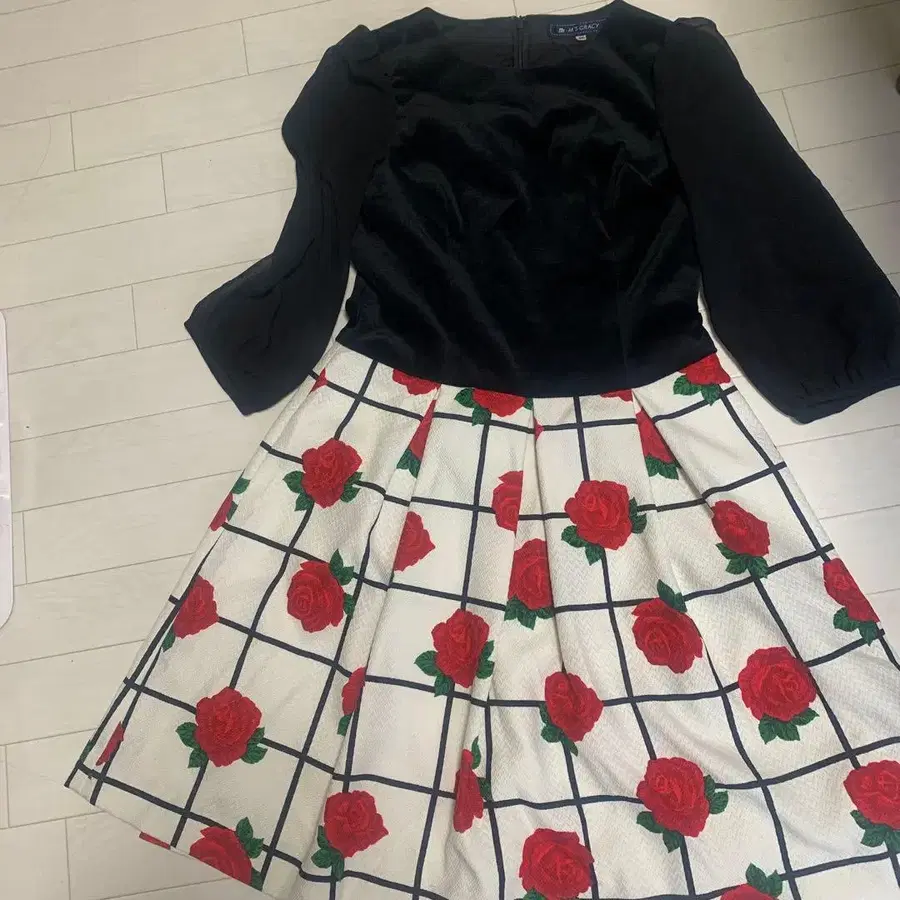엠즈그레이시 장미 무늬 벨로아 원피스