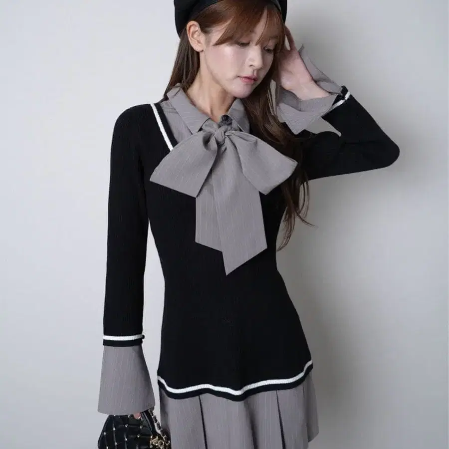 LIPSERVICE 셔츠 도킹 플리츠 원피스 블랙