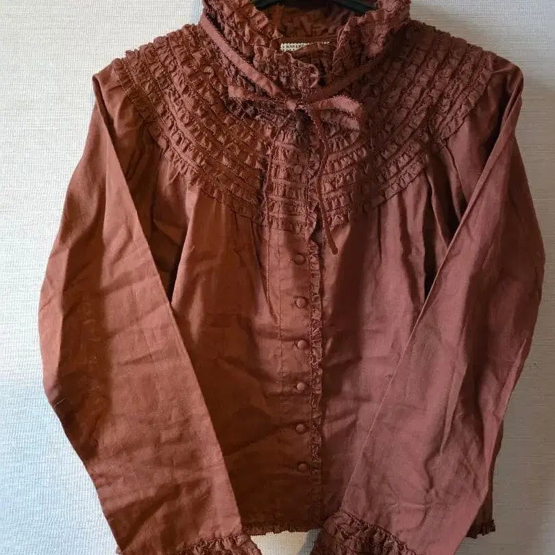브라운 프릴 보타이 긴팔 셔츠 KANEKOISAO