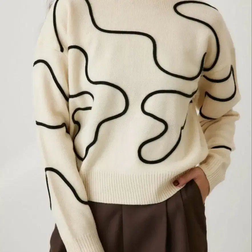 crie conforto 코드 자수 니트 니트 상의