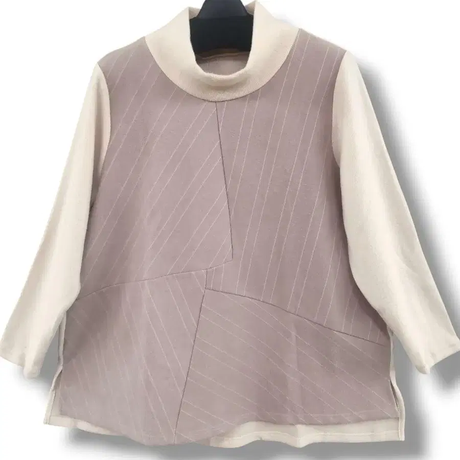 밝은 오프 베이지 계열 무지와 동일 컬러 바이어스 스트라이프의 이소재 배색 튜닉 ☆