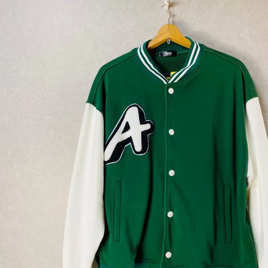 A'gem 바시티 자켓 그린/화이트