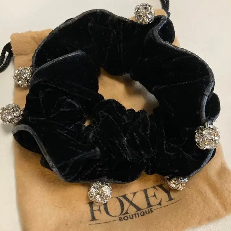 FOXEY 폭시 벨로아 반짝이는 지르코니아 볼 스크런치 블랙