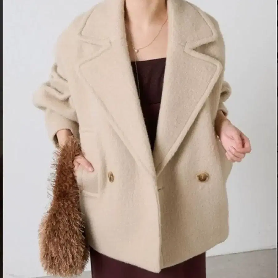콜라주 개럴개런트 울 혼방 샤기 P 코트