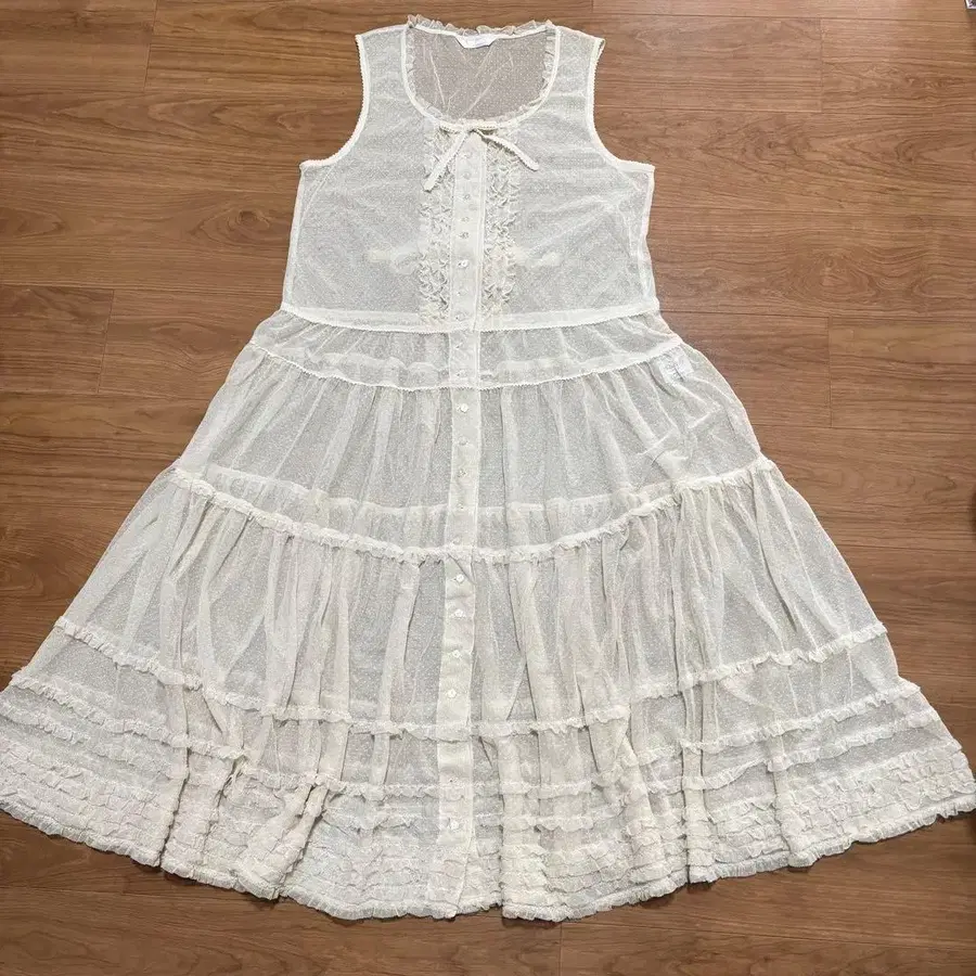 핑크하우스 도트튤 슬리브리스 원피스 아이보리