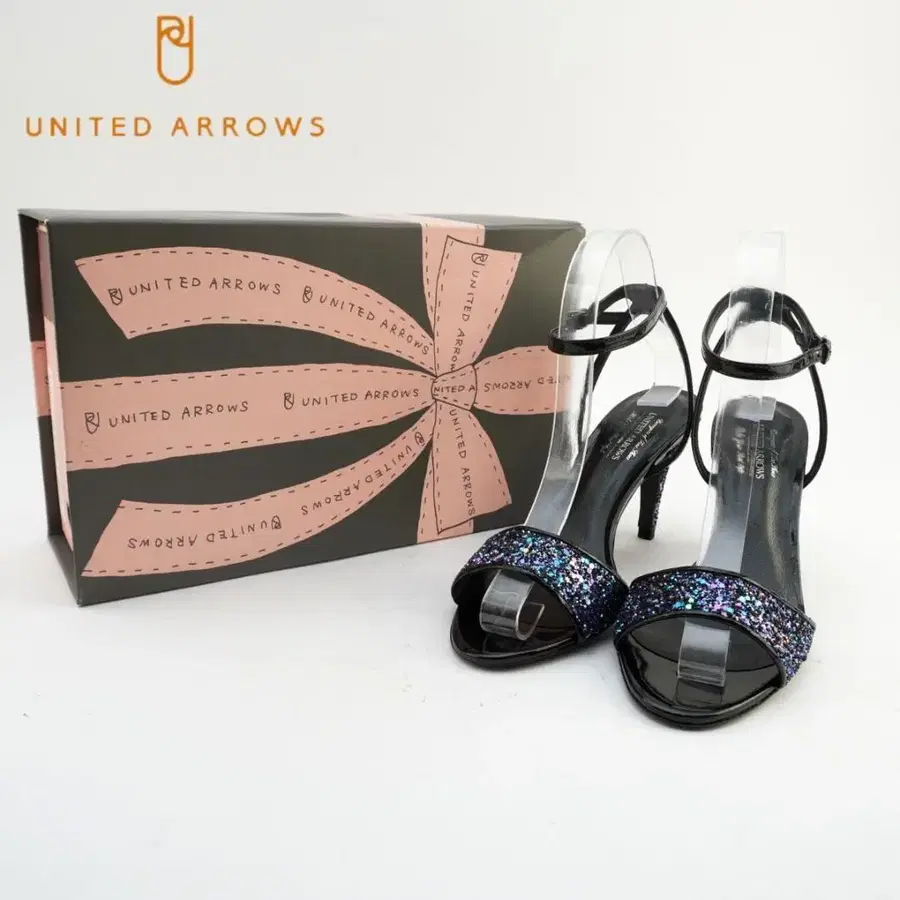 자동 번역되었어요. 원문보기UNITED ARROWS 유나이티드 애로우즈 36 1/2 23.5~24.0 샌들 힐 앵클 스트랩 라메 에나멜 블랙 블랙 박스 포함/GC193