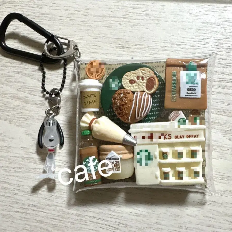 가챠 파우치 스누피 카페 화이트 그린