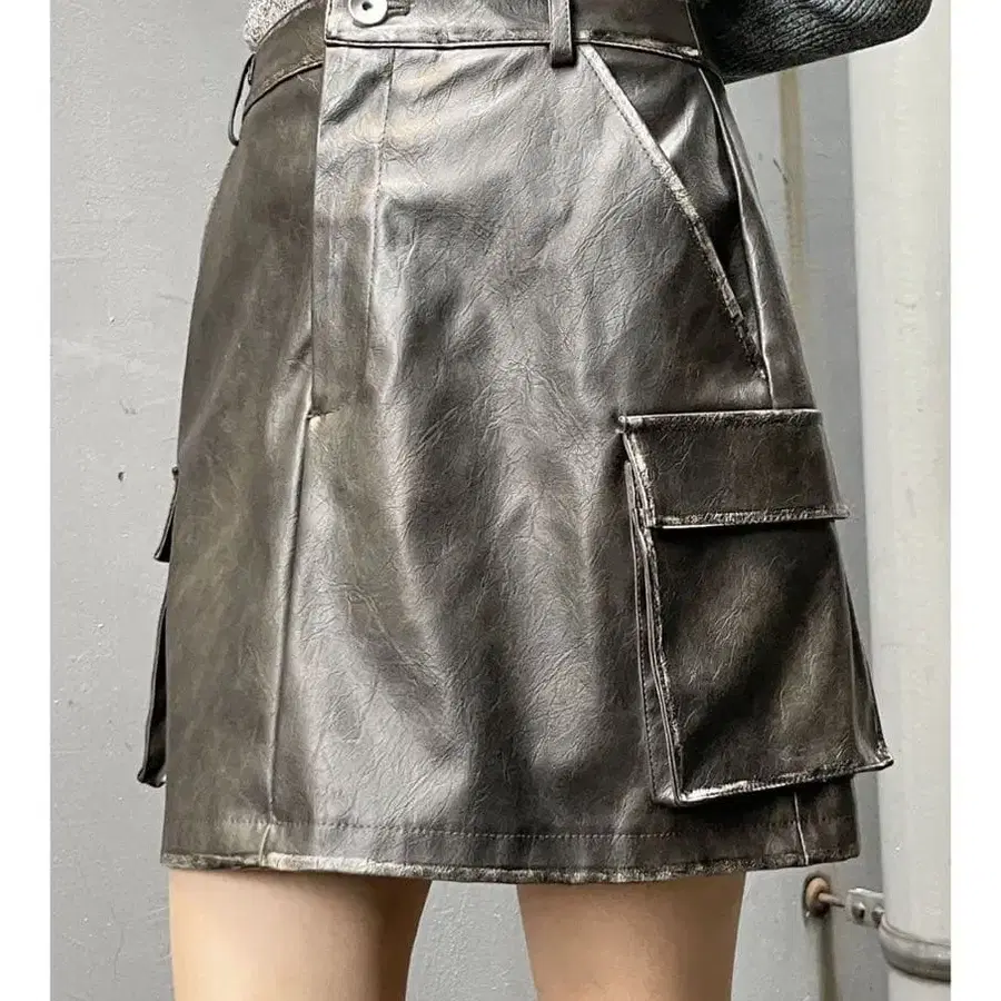 MURUA 빈티지풍 인조 가죽 미니 스커트